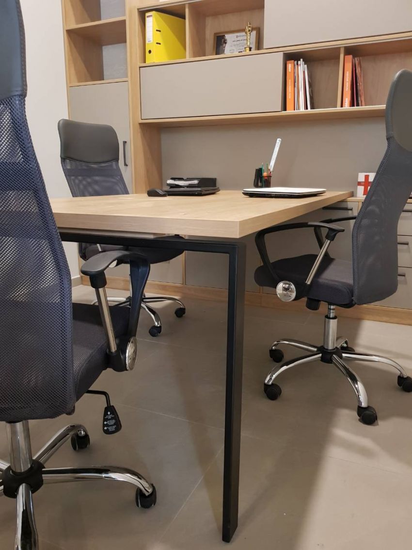 Acest birou este amenajat in oficiul nostru din strada Miron Costin ,17/2. Cind ne-am mutat in acest oficiu, din start am stiut ca avem nevoie de un spatiu mai izolat pentru intruniri si locul de lucru a managerilor. Asa am decis sa deimitam sala de baza, unde sint esxpuse mostre de materiale si este si locul de lucru a designeri-lor.