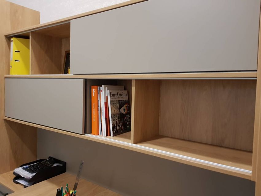 Pe centru avem rafturi cu usi glisante, unde am folosit mecanismul de la Hettich
