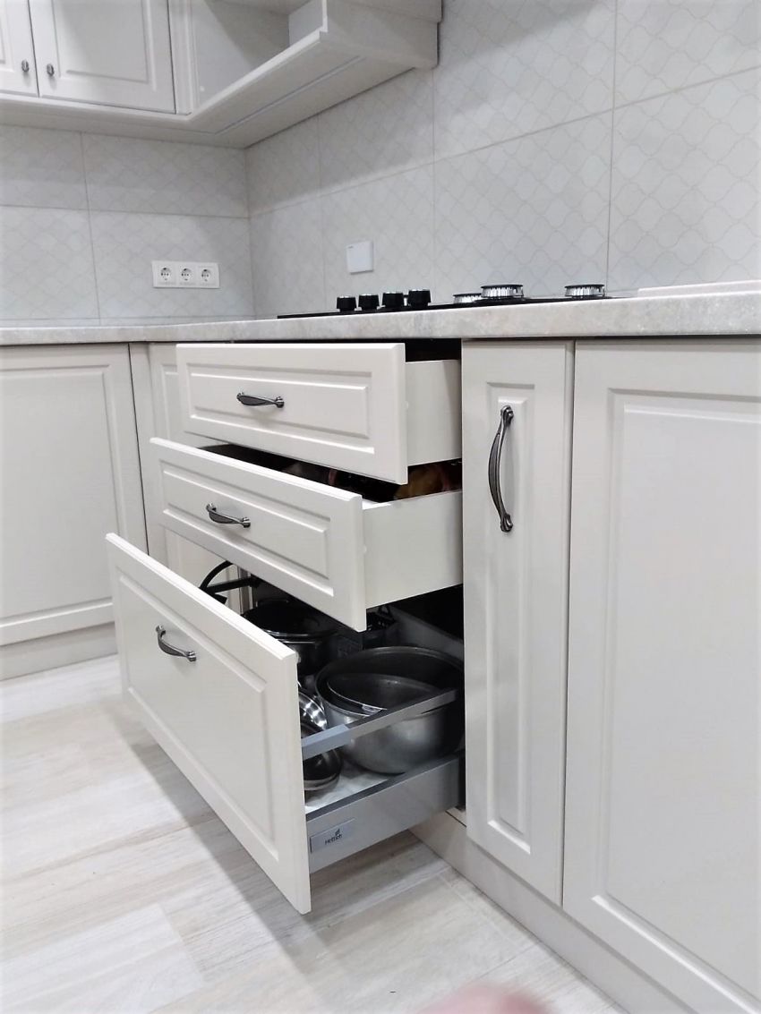 Comandatarii acestui mobilier au decis sa faca acasa o replanificare a spatiului pentru a mari bucataria si intr-un final au obtinut o incapere de aproximativ 12.5 mp. Pentru ca mobilierul sa fie cit mai functional, l-am planificat inca la etapa de constructie, astfel incit toate comunicatiile sa fie la locul potrivit.
